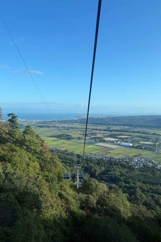 麓の駐車場からゴンドラ約8分で標高約630mの山頂へ——