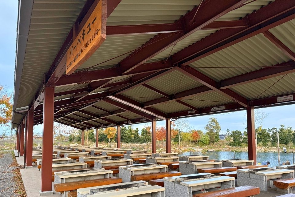雨の日でも安心の屋根付きテーブルや清潔なトイレを備え、イベント利用にも向いています。